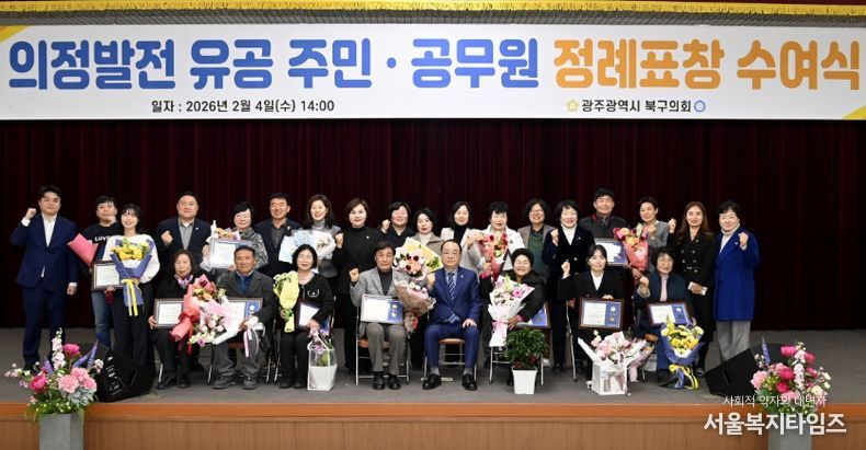 서울복지타임즈 이재연 기자 | 광주 북구의회는 지난 4일, 지역사회 발전에 헌신한 유공자들의 공로를 기리기 위해 2026년도 새해 첫 정례표창 수여식을 개최했다.