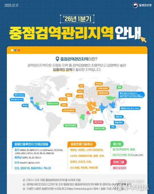 중점검역관리지역 현황과 여행 전·중·후 감염병 예방수칙 등 해외여행 건강 정보는 ‘여행건강오피셜’ 누리집을 통해 확인할 수 있다.