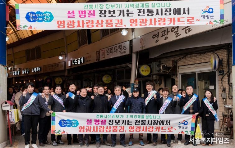 이는 공직자들이 전통시장을 직접 찾아 영광사랑상품권으로 제수용품과 굴비 등 지역 특산물을 구매하여 지역상권 활성화를 유도하고 지역사랑상품권 애용 홍보로 지역 경제 선순화 문화 확산에 기여할 것으로 기대하고 있다.