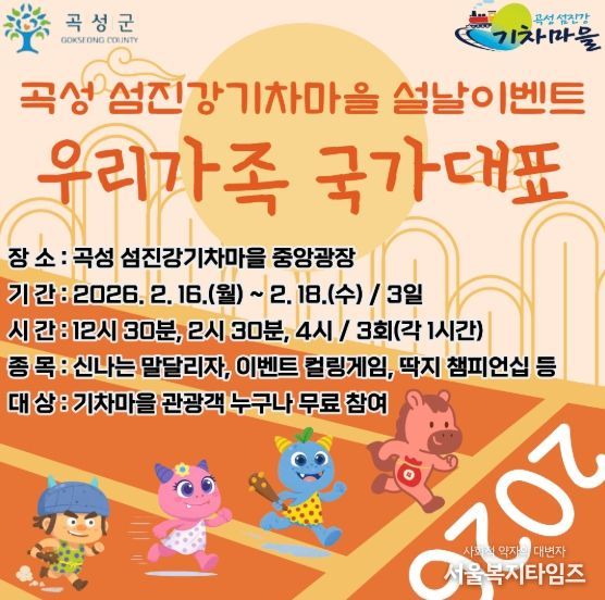 서울복지타임즈 이재연 기자 | 곡성군은 설명절 연휴 기간 중 2월 16일부터 18일까지 3일간 섬진강기차마을 중앙광장에서 방문객들을 위한 특별 이벤트를 운영한다고 6일 밝혔다.