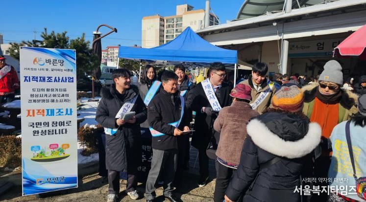 서울복지타임즈 이재연 기자 | 무안군은 설 명절을 맞아 지난 9일 오전 무안읍 전통시장을 찾아 주민과 방문객을 대상으로 지적재조사사업과 도로명주소 제도에 대한 홍보 활동을 진행했다고 밝혔다.