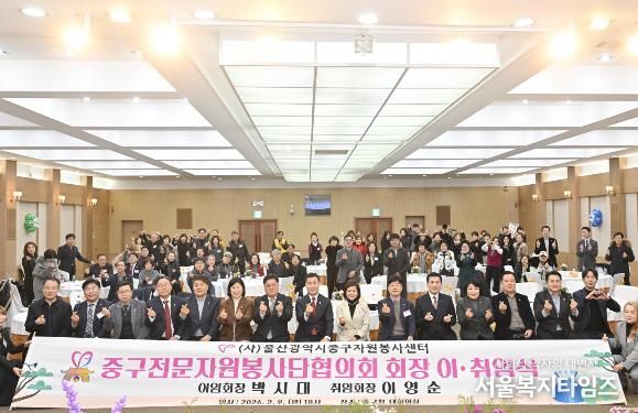 서울복지타임즈 이재연 기자 | (사)울산중구자원봉사센터 소속 울산중구전문자원봉사단협의회가 지난 2월 9일 오후 6시 중구청 대회의실에서 제11·12대 회장 이·취임식을 개최했다.