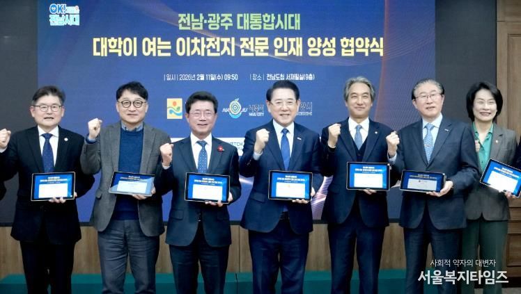 서울복지타임즈 이재연 기자 | 전라남도는 11일 광양시·나주시, 광주·전남 주요 대학과 이차전지 전문인재 양성을 위한 업무협약을 하고, 광양만권 이차전지 특화단지 유치와 조성에 필요한 인력 육성에 협력하기로 했다.
