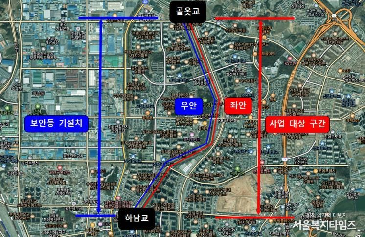 풍영정천 산책로는 풍영정천 좌안 하남교부터 골옷교까지 약 3㎞ 구간으로, 산책로에 조명시설이 없어 야간 보행 환경 개선 필요성이 제기됐다.