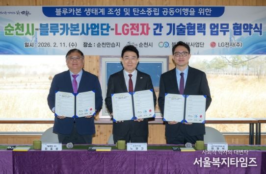 서울복지타임즈 이재연 기자 | 순천시는 11일 순천만습지에서 서울대 블루카본사업단, LG전자(주)와 함께 '블루카본 생태계 조성 및 탄소중립 공동 이행을 위한 업무협약'을 체결했다고 밝혔다.