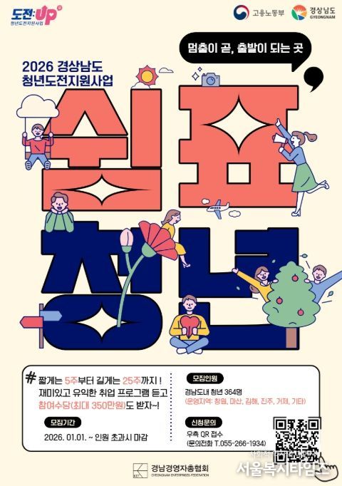 서울복지타임즈 이재연 기자 | 경상남도는 2026년 경상남도 청년일자리 사업 참여 청년과 기업을 2월 9일부터 예산 소진 시까지 모집한다고 밝혔다.