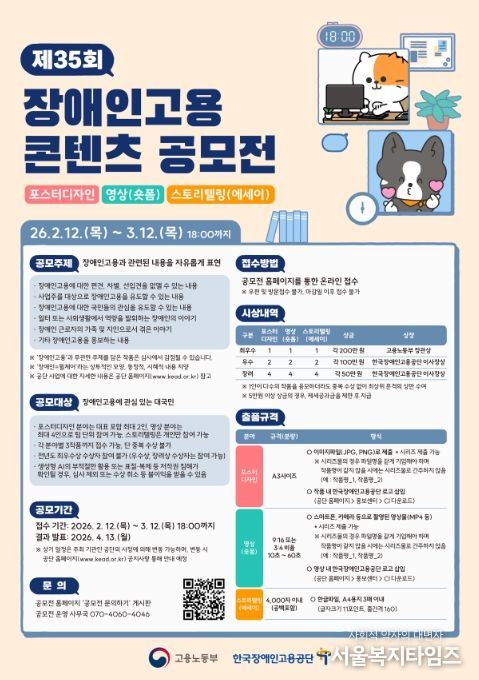 서울복지타임즈 이재연 기자 | 고용노동부와 한국장애인고용공단이 '2026년 제35회 장애인고용 콘텐츠 공모전'을 개최한다.