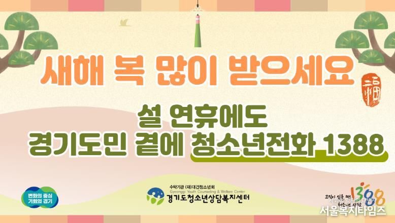 서울복지타임즈 이재연 기자 | 경기도는 설 당일을 포함해 14~18일 연휴 기간에도 위기 청소년 심리 상담 서비스 ‘청소년전화1388’을 24시간 운영한다.