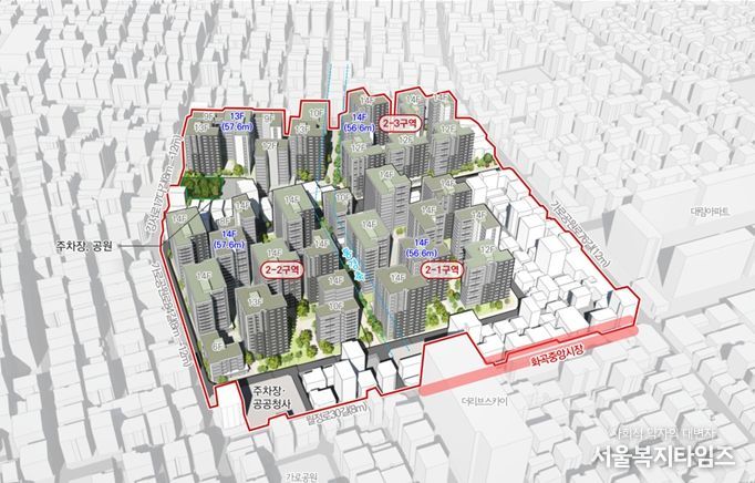 강서구 화곡1동 354번지 일대(85,462.6㎡)는 모아주택 3개소 추진을 통해 기존 1,654세대에서 275세대가 늘어난 총 1,929세대(임대 479세대 포함)가 공급될 예정이다.