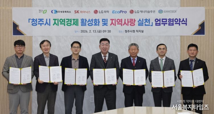이날 협약식에는 이범석 청주시장과 차태환 청주상공회의소 회장, 박호현 SK하이닉스㈜ 부사장, 김영대 ㈜LG화학 청주공장 대외협력팀장, 최상운 에코프로 부사장, 김용술 ㈜LG에너지솔루션 오창주재임원, 이규득 ㈜심텍 상무가 참여했다.