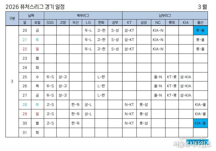 서울복지타임즈 이재연 기자 | 2026 KBO 퓨처스리그가 3월 20일(금) 개막한다.