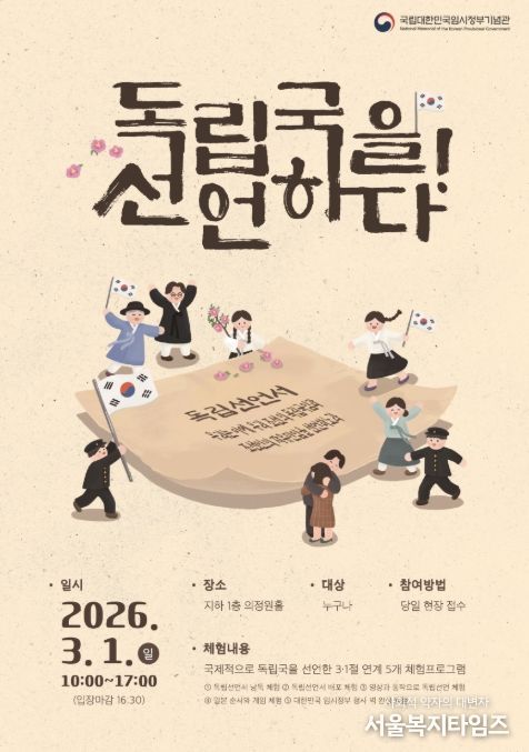 서울복지타임즈 이재연 기자 | 국가보훈부는 제107주년 3·1절을 맞아 3·1운동에서 독립선언 과정을 체험할 수 있는 체험프로그램과 문화행사가 국립대한민국임시정부기념관(서울 서대문구)에서 다채롭게 펼쳐진다고 밝혔다.