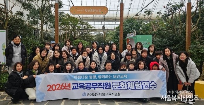 서울복지타임즈 이재연 기자 | 충청남도태안교육지원청은 24일, 관내 교육공무직원 40여 명을 대상으로 전북 익산 일원에서 ‘2026 교육공무직원 문화체험 연수’를 실시했다고 밝혔다.