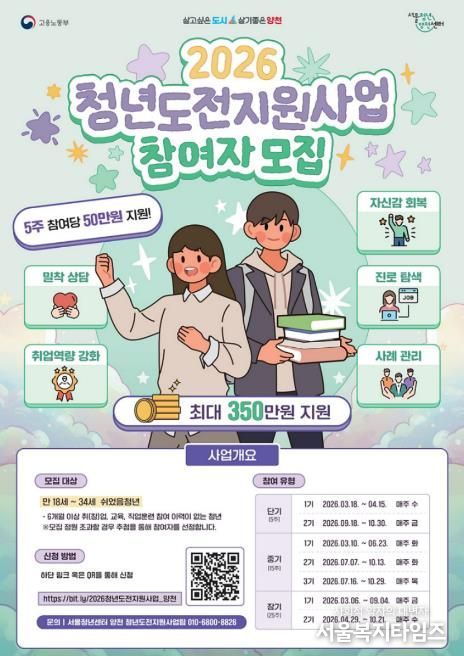 서울복지타임즈 이재연 기자 | 양천구는 구직을 단념한 청년을 대상으로 맞춤형 프로그램을 제공해 자신감 회복과 사회 진출을 돕는 ‘2026년 청년도전지원사업’을 3월부터 본격 추진한다고 밝혔다.