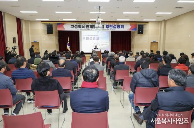 서울복지타임즈 이재연 기자 | 고성군은 2월 24일 고성읍행정복지센터에서 지역 주민과 관계자 등이 참석한 가운데 KTX고성역세권개발사업 주민설명회를 개최했다.