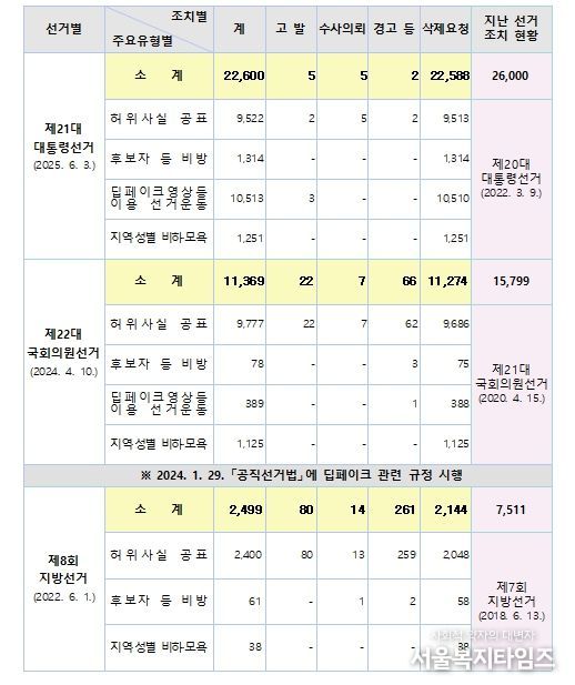중앙선관위는 딥페이크 제작물이나 허위사실공표·비방 행위는 후보자에게 회복하기 어려운 피해를 줄 수 있고 유권자의 판단을 왜곡하여 선거결과에 영향을 미칠 수 있다면서, 깨끗한 사이버선거문화 조성을 위해 관계기관 등의 적극적인 협조를 요청했다.