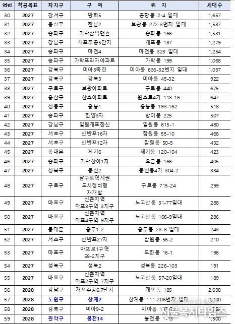 특히 시는 지난 5개월간의 세밀한 공정 점검을 바탕으로 62개 구역의 착공 시기를 원래 계획보다 최대 1년까지 앞당겼으며, 2029년 이후 착공 예정이던 일부 구역들은 2028년 이내 착공이 가능해졌다.