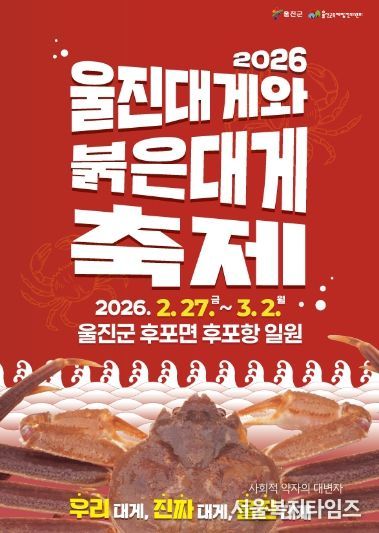 서울복지타임즈 이재연 기자 | 임금님의 수랏상에도 올랐다는 명품 음식을 저렴하고 푸짐하게 먹을 수 있는 곳이 있다. 겨울의 끝자락인 2월, 살이 통통하게 오른 대게와 붉은 대게의 참맛을 즐길 수 있는‘2026 울진대게와 붉은대게축제’가 울진 후포항 일원에서 개최된다.
