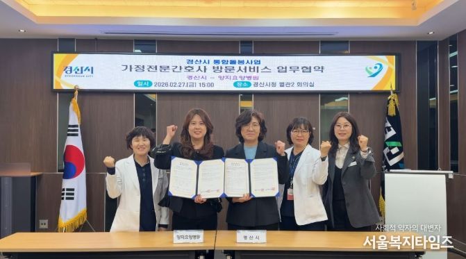 서울복지타임즈 이재연 기자 | 경산시는 지난 27일 양지요양병원과 지역 내 의료·요양 연계를 강화하고 돌봄이 필요한 시민의 건강한 일상생활을 지원하기 위한'가정 전문 간호 방문 서비스' 업무협약을 체결했다.