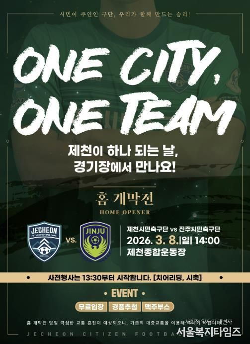 서울복지타임즈 이재연 기자 | 제천시민축구단이 오는 3월 8일 오후 2시, 제천종합운동장에서 역사적인 홈 개막전을 연다.