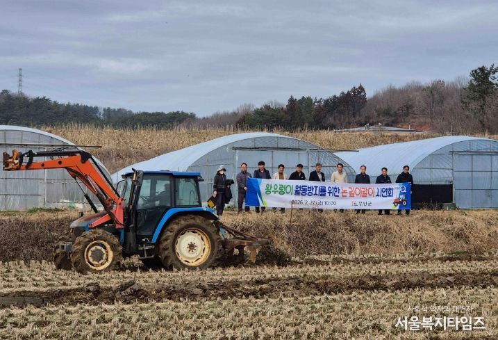 서울복지타임즈 이재연 기자 | 무안군은 지난 27일 무안읍 용월리 일원에서 ‘월동 왕우렁이 피해 방지를 위한 논 깊이갈이 시연회’를 개최했다고 밝혔다.