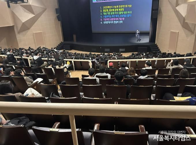 1부 행사에서는 김상태 강사와 심주석 강사가 각각 국어와 수학의 수능 및 내신 대비 전략을 강의하며 학생들에게 실질적인 공부법을 전수했다.