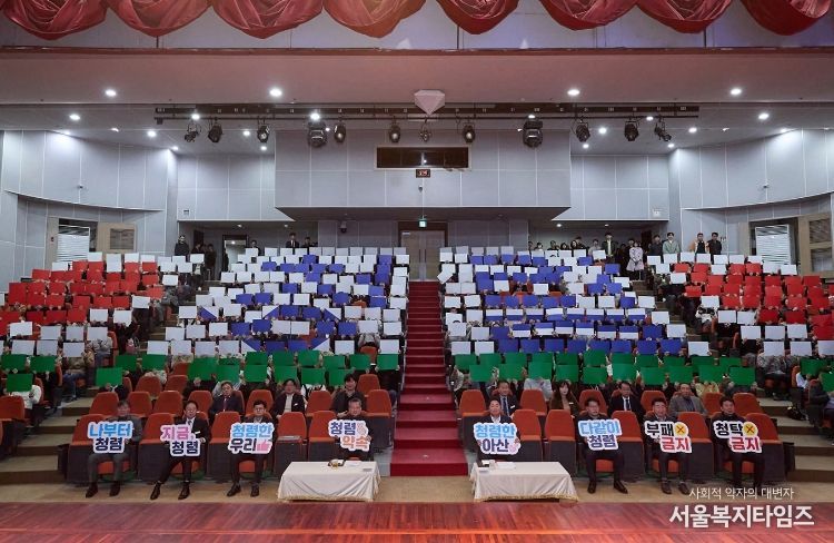 서울복지타임즈 이재연 기자 | 아산시 감사위원회(위원장 김점균)는 3일 오전 아산시청 시민홀에서 청렴 선포식과 공직자 청렴교육을 개최하고 청렴 실천 의지를 대내외에 선언했다.