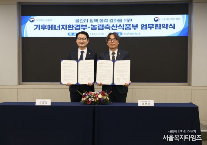 서울복지타임즈 이재연 기자 | 농림축산식품부와 기후에너지환경부는 3월 4일 정부세종청사에서 물관리 정책 협력 강화를 위한 업무협약(MOU)을 체결한다.