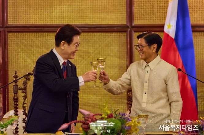 서울복지타임즈 이재연 기자 | 필리핀을 국빈 방문 중인 이재명 대통령 부부는 3일 저녁, 페르디난도 로무알데즈 마르코스 주니어 대통령이 필리핀 말라카냥궁에서 주최한 만찬에 참석했다.