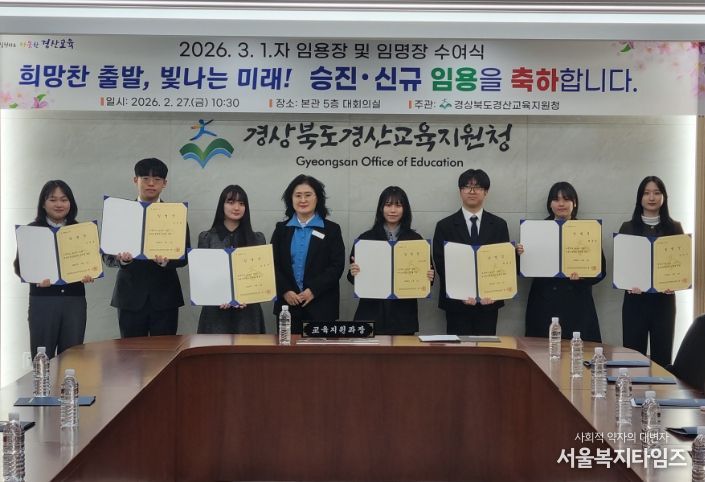 서울복지타임즈 이재연 기자 | 경산교육지원청은 2월 27일 경산교육지원청 본관 5층 대회의실에서 신규교감 8명, 신규교사 7명에게 임용장 및 임명장을 수여했다.