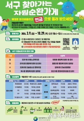 서울복지타임즈 이재연 기자 | 대전 서구는 생활폐기물 증가와 재활용품 품질 저하 문제에 대응하기 위해, 이달 9일부터 올해 10월까지 ‘찾아가는 자원순환가게’를 운영한다.