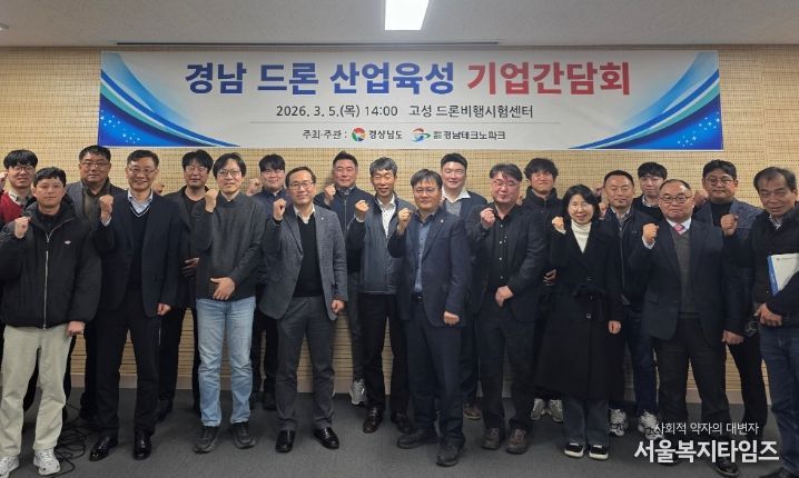 서울복지타임즈 이재연 기자 | 경상남도는 5일 고성 드론개발시험센터에서 도내 드론 기업과 간담회를 열고 산업 활성화 방안과 현장 애로사항을 청취했다고 밝혔다.