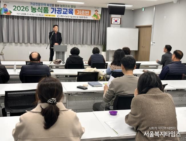 서울복지타임즈 이재연 기자 | 광양시는 지역 농업인의 농산물 가공 역량을 높이고 농식품 가공 창업 기반을 강화하기 위해 '2026년 농식품 가공교육 기초반'을 개강하고 본격적인 교육 운영에 들어갔다고 밝혔다.