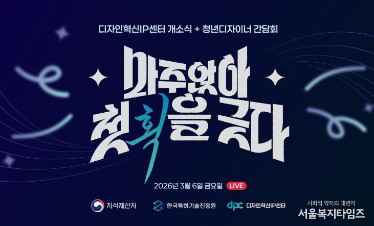 서울복지타임즈 이재연 기자 | 지식재산처는 3월 6일 한국특허기술진흥원(서울 마포구)에서 ‘디자인 혁신 지식재산 센터(DIPC, Design Innovation IP Center)’ 개소식을 개최하고 청년 디자이너들과 현장 소통 간담회를 가진다고 밝혔다.