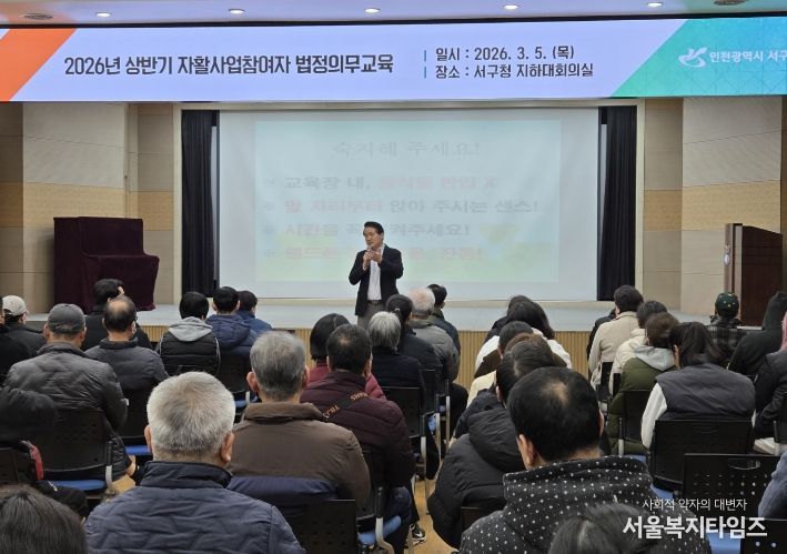 서울복지타임즈 이재연 기자 | 인천 서구는 지난 5일 자활사업 참여자 250여 명을 대상으로 ‘2026년 상반기 법정의무교육’을 실시했다고 밝혔다.