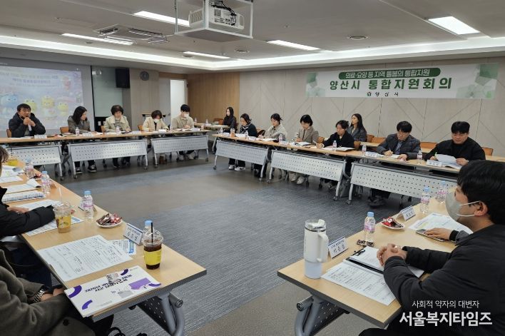 이날 회의에는 양산시 복지정책과 돌봄통합지원팀을 비롯해 양산시보건소, 웅상보건소, 국민건강보험공단 양산통합돌봄팀, 국민연금공단 장애인지원센터, 의료기관 및 사회복지기관 관계자 등 13개 기관 21명이 참석했다.