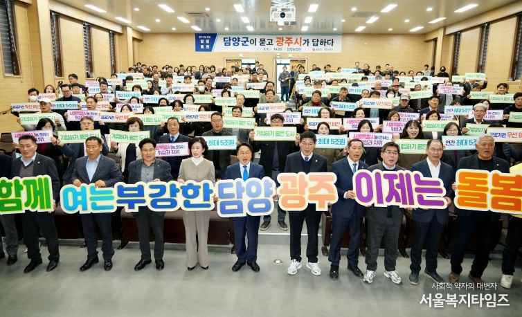 서울복지타임즈 이재연 기자 | 광주광역시는 6일 담양군 담빛농업관 대강당에서 ‘광주·전남 통합 담양군 상생토크’를 열고, 광주·전남 통합 이후 담양 발전 전략과 지역 변화 방향을 군민들과 공유했다.