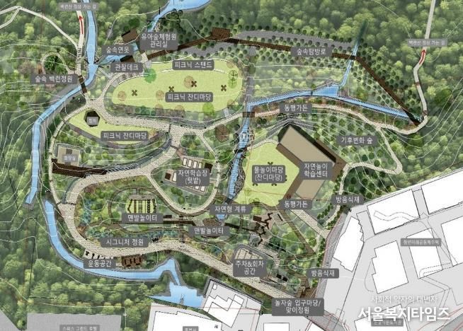구는 기존 무허가 건물을 철거하고 피크닉 잔디마당, 자연학습장, 물놀이마당, 맨발놀이터 등을 만든다.