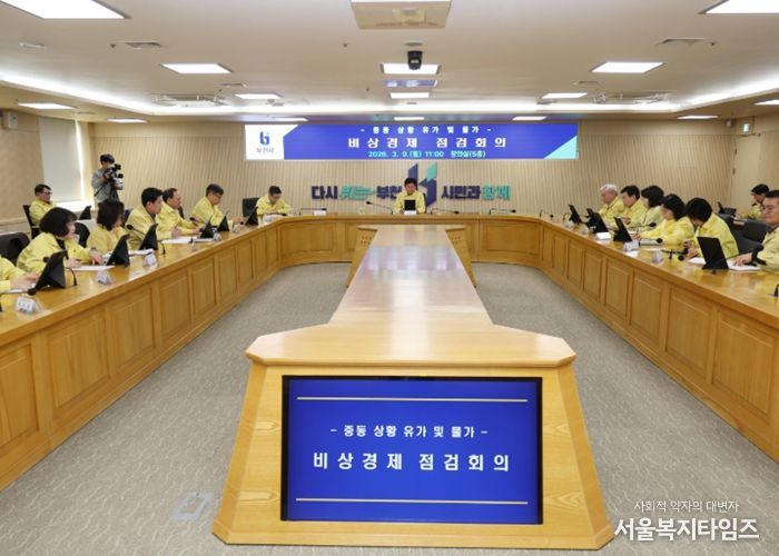 서울복지타임즈 이재연 기자 | 부천시가 중동지역 정세 불안에 따른 국제 유가와 물가 상승 부담에 선제 대응하기 위해 9일 시청 창의실에서 ‘중동 상황 유가 및 물가 관련 비상경제 점검회의’를 열었다.