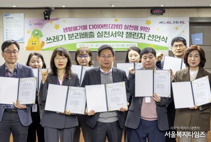 구는 이번 챌린지를 통해 음식물 쓰레기와 비닐·플라스틱·종이의 올바른 분리배출을 생활화하고, 다회용기 사용과 장바구니·텀블러 사용 등 주민이 참여하는 자원순환 문화를 정착시켜 나갈 계획이다.