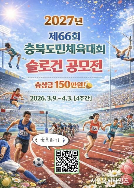 서울복지타임즈 이재연 기자 | 충북 보은군이 2027년 보은에서 개최되는 '제66회 충북도민체육대회'의 성공적인 개최와 참여 분위기 조성을 위해 대회 슬로건 공모전을 진행한다고 11일 밝혔다.