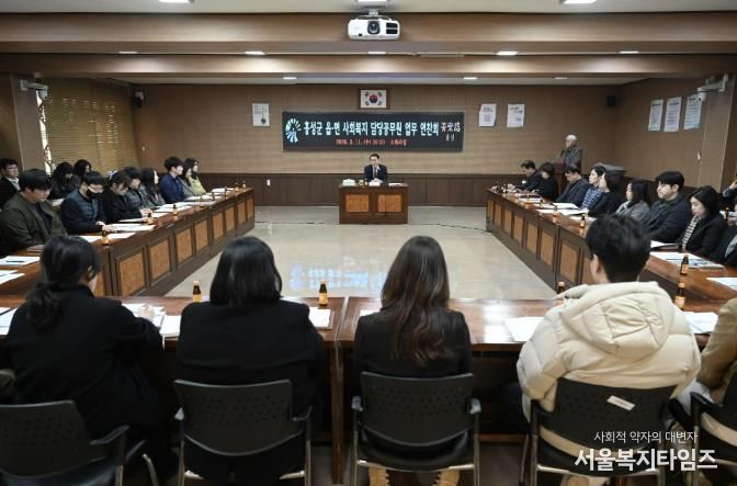 홍성군은 지난 11일 군청 회의실에서 읍·면 사회복지 담당 공무원들의 역량 강화와 역할 제고를 위한 ‘2026 읍·면 사회복지 업무 연찬회 및 토론회’를 개최했다.