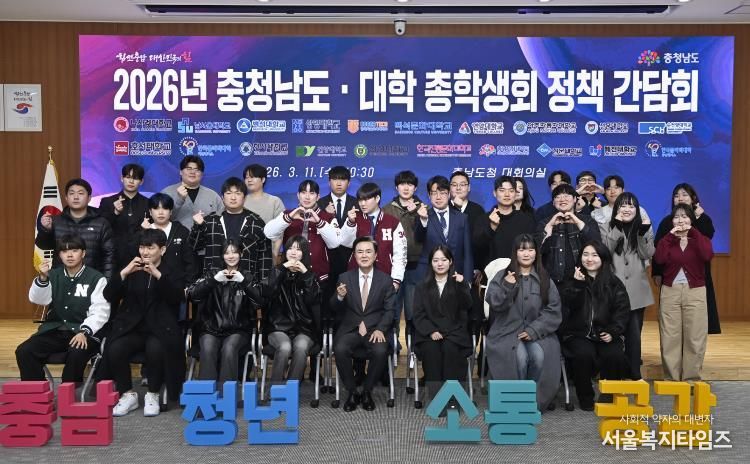 서울복지타임즈 이재연 기자 | 충남도는 11일 도청 대회의실에서 도내 20개 대학* 총학생회장단과 청년정책의 실효성을 높이고 지역 활력을 제고하기 위한 ‘2026년 도-대학 총학생회 정책 간담회’를 개최했다.