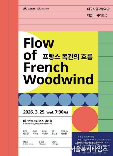 이번 공연에서는 생상스, 풀랑크, 프랑세까지 프랑스 작곡가들의 실내악 작품을 통해 목관과 피아노가 선보이는 다채로운 색채와 섬세한 음향을 가까이에서 느낄 수 있다. 출연진은 셴유칭(플루트), 최규연(오보에), 이성규(클라리넷), 윤주훈(바순)과 객원 피아니스트 정승원이다. 2025년 새롭게 합류한 대구시향 목관 단원들이 중심이 되어 젊고 신선한 에너지와 유려한 호흡으로 프랑스 음악의 생동감을 한층 더한다.