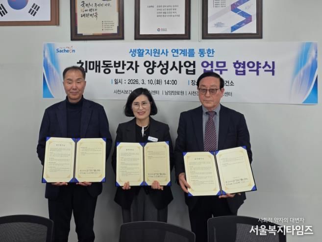지난해 사랑원노인지원센터, 사천노인통합지원센터와 업무협약을 체결한 데 이어, 지난 10일 남양양로원, 사천건양주야간보호센터 2개소와 새롭게 협약을 맺고 생활지원사 60명을 ‘치매파트너(치매동반자)’로 양성하기로 했다.