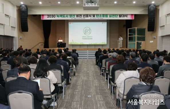 서울복지타임즈 이재연 기자 | 양산시는 2026년 3월 12일 양산비즈니스센터 컨벤션홀에서 '2030 녹색도시 양산' 비전 선포식과 탄소중립 실천단 발대식을 개최하고, 지속가능한 녹색도시로의 본격적인 전환을 공식 선언했다.