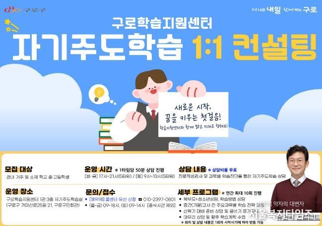 서울복지타임즈 이재연 기자 | 구로구가 오는 3월 16일부터 12월 31일까지 구로학습지원센터(가마산로25길 21)에서 ‘자기주도학습 상담실’을 운영한다.
