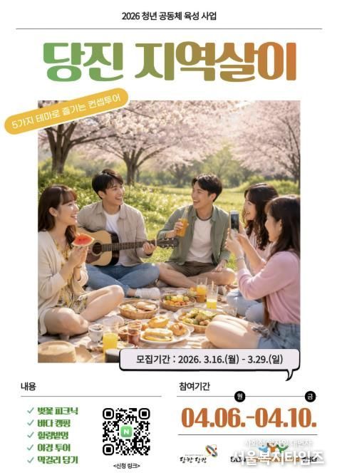 서울복지타임즈 이재연 기자 | 당진시는 농촌신활력플러스사업 추진단에서 농촌의 삶과 지역문화를 체험할 수 있는 청년 체류형 프로그램 ‘청년 지역살이 컨셉투어’참가자를 모집한다고 16일 밝혔다.