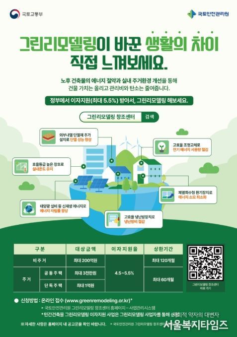 서울복지타임즈 이재연 기자 | 건물 리모델링을 계획하는 국민들이 이자 부담을 덜고 에너지 비용까지 줄일 수 있는 지원이 다시 시작된다.