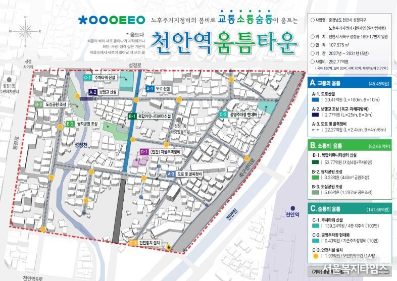 서울복지타임즈 이재연 기자 | 천안시가 서북구 성정동 일대의 노후 저층 주거지역을 아파트 수준의 정주 환경으로 개조하기 위해 국토교통부 주관의 ‘노후주거지정비 지원사업’ 공모에 도전한다고 18일 밝혔다.